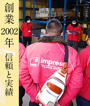 一般的なポスティング会社のイメージは怪しい・不透明・よくわからないなどのネガティブなイメージが多いのですが、インプレスはそのイメージとは真逆に、倉庫を常に綺麗に保ち、スタッフは元気で明るく、一枚一枚のチラシを大切に扱い、依頼者の気持ちになってチラシを配る会社です。ぜひ当社にご来店いただき、私たちのポスティングを知っていただきたいと思っています。ポスティングに関する不安やお悩みはいつでも相談可能です。